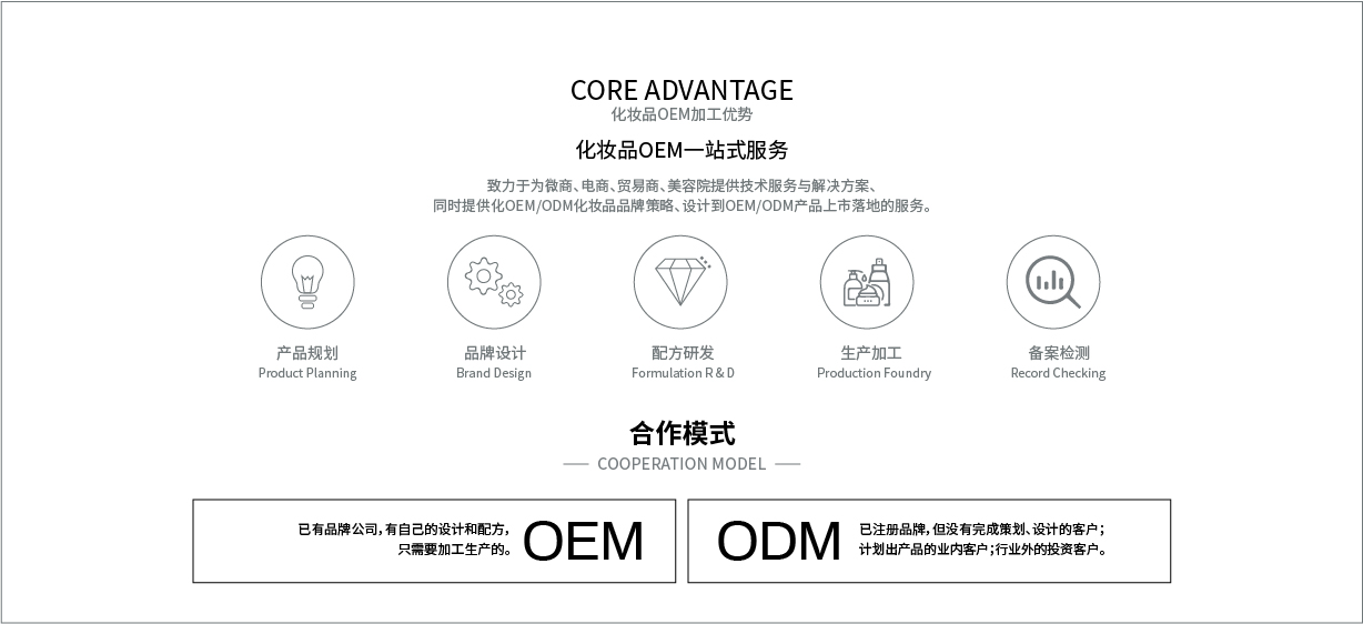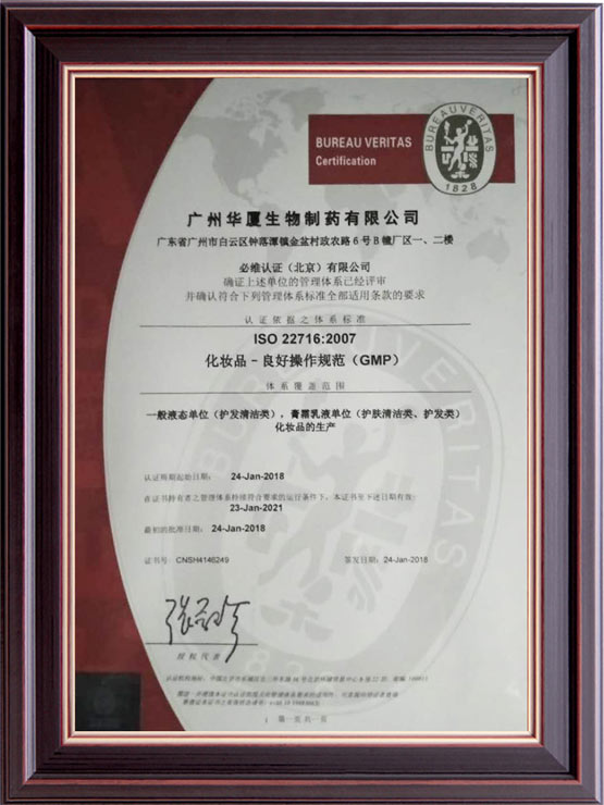 公司始創(chuàng)建于2012年,經(jīng)過八年的健康發(fā)展,已經(jīng)成為可以從事妝字號(hào)、消字號(hào)、械字號(hào)等系列產(chǎn)品生產(chǎn)加工的大型企業(yè)。企業(yè)坐落在美麗的廣州白云區(qū)鐘樓潭鎮(zhèn),擁有面積超過15,000平方米的生產(chǎn)廠房。廠房寬敞明亮,設(shè)計(jì)科學(xué)新進(jìn),擁有十萬級(jí)的生產(chǎn)車間,局部環(huán)境可以達(dá)到一萬級(jí)別;設(shè)備多采用新進(jìn)的進(jìn)口設(shè)備,自動(dòng)化程度非常高,擁有一流的生產(chǎn)設(shè)施。工廠同時(shí)通過了ISO22716和GMCP質(zhì)量管理認(rèn)證,擁有一流的質(zhì)量管理體系。廠。
